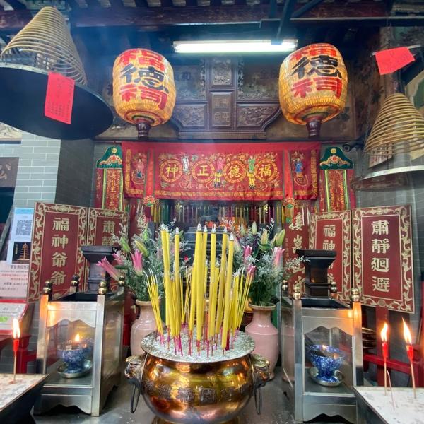 In the middle of the market is a tiny temple honouring the god of the land, Fok Tak, a popular God in Macao: three temples are devoted to this god. This one is both the smallest and the oldest, dating back to 1882 when this area was still a wild forest.
