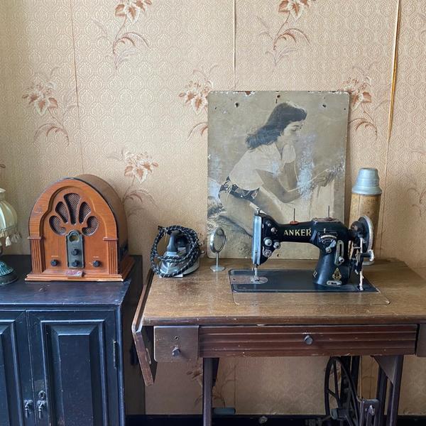 This is what life in a typical Tong-Lau (shop house) looked like in the 1960s and 1970s. This narrow three-story building with a rickety staircase has been completely kitted out with vintage singer sewing machines, retro floral wallpaper and period furniture.