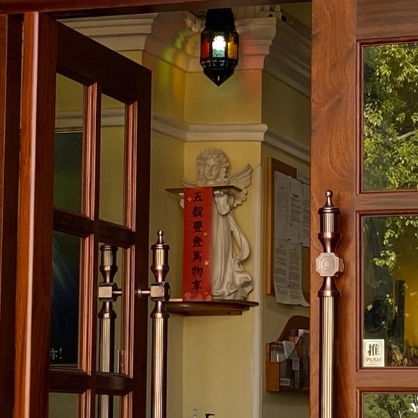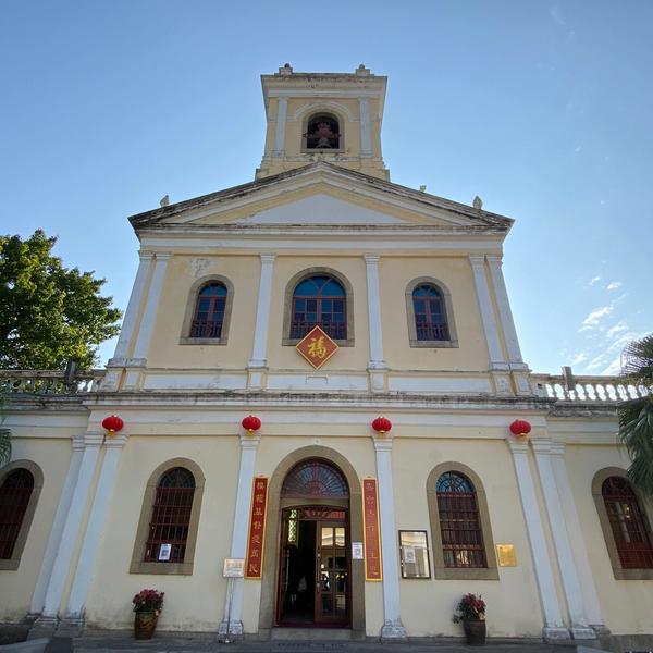 During Spring Festival the church hangs couplets, adding traditional Chinese elements to the Western-style church, which may be the characteristic of the fusion of Chinese and Western in Macao.