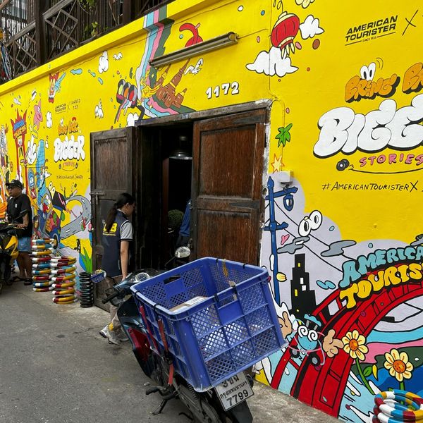 This alley with lots of street art and scrap metal shops, is one of those hidden gems that make Talad Noi so special. Mother Roaster is a lovely café on the second floor of what looks like just another warehouse with spare parts. Auntie Pim and her son rented this old shack and refurbished the upper floor into an elegant coffee bar with the 70-year-old barista passing on her home-grown roasting skills to the next generation. You can choose how you like your coffee; black, strong, not sour, organic, not sweet, this was my choice.