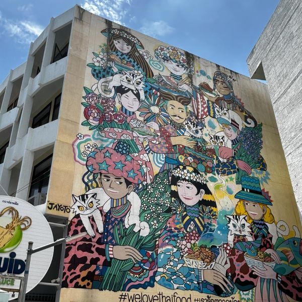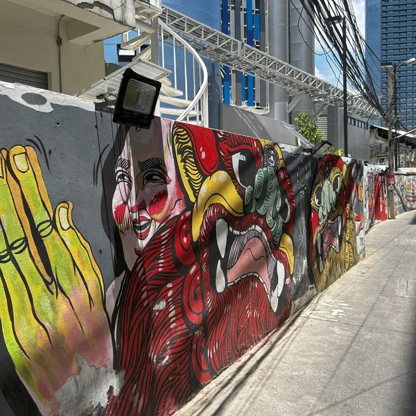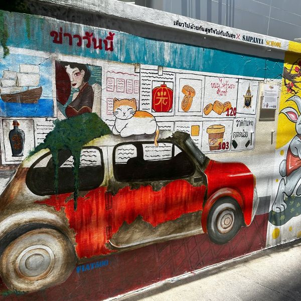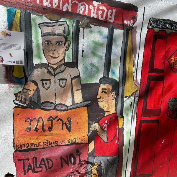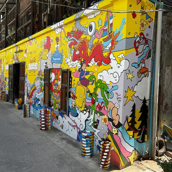 Walking from River City into the Talad Noi, after the Marine Department, take the first alley left for lots more murals, including some that depict the spirit of this unique neighbourhood. It was the 2020 Bangkok Design that introduced Talad Noi to a bigger audience. The event that transformed the relatively unknown district into a giant creative playground with a host of exhibitions, workshops, lectures, film screenings, and other activities. There are still many murals and creative places to see, so if you have time wonder off and explore the streets around this route.