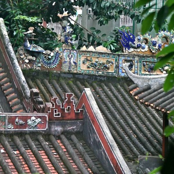 Have a look at the exquisite Shek Wan pottery figures on the roof and porch. They depict typical scenes from Cantonese opera stories.